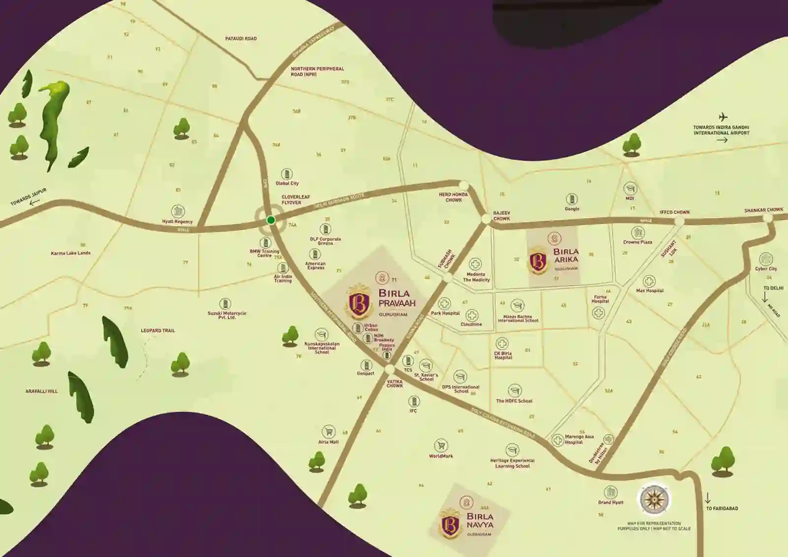 Located on Gurugram's Southern Peripheral Road (SPR), one of the city's fastest-growing corridors, Birla Pravaah gives you easy access to NH 48, Golf Course Extension Road, Sohna Road, and the Dwarka Expressway.