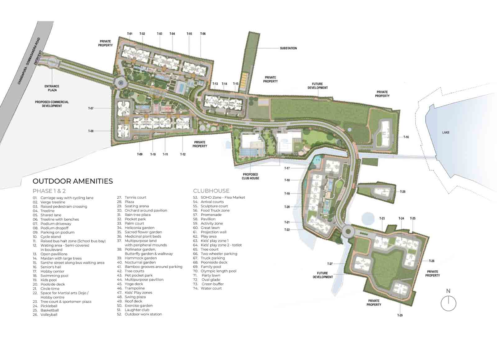 Nambiar District 25 offers world-class outdoor amenities, including a swimming pool, kids’ pool, yoga deck, jogging track, cycling lanes, and sports courts like tennis, basketball, and volleyball. Beautiful landscaped spaces, such as a butterfly garden, bamboo grove, and palm court, enhance the living experience. Dedicated areas for kids, senior citizens, and pets make it ideal for families.